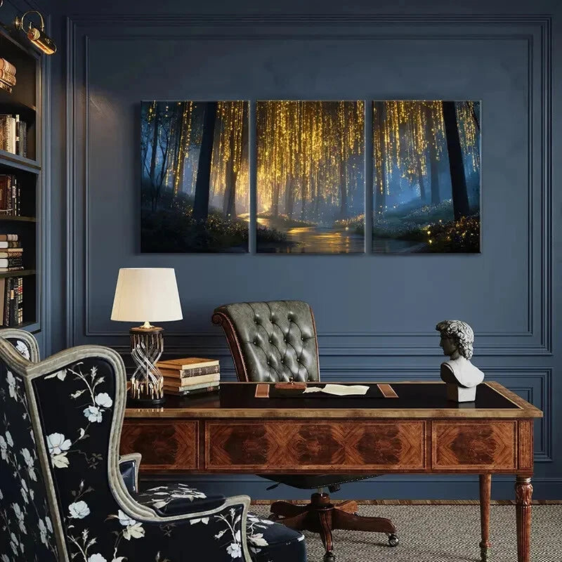 3pcs Enchanted Forest Glow Mystical Night Scene Metal Print Ready to Hang Art