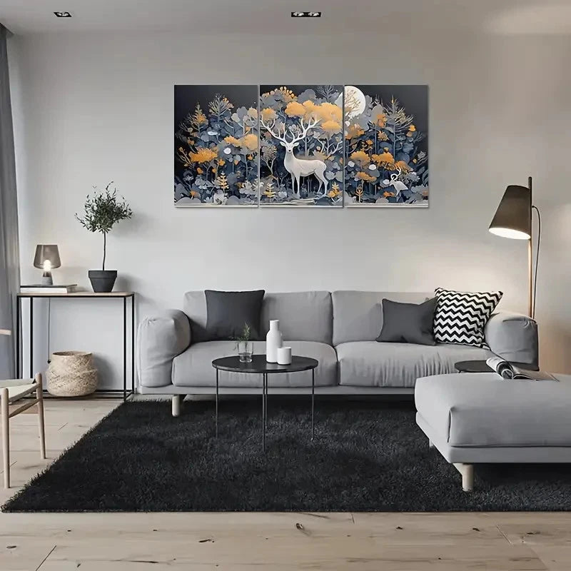3pcs Enchanted Forest Moonlit Deer Metal Print Ready to Hang Art