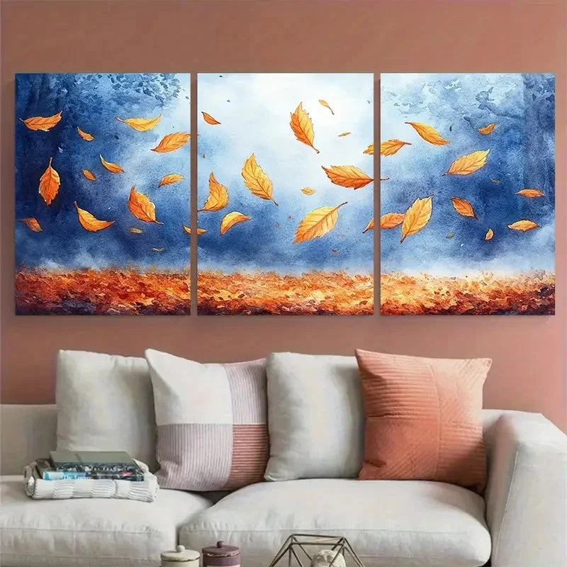 3pcs Falling Yellow Leaves Autumn Watercolor Metal Print Ready to Hang Art