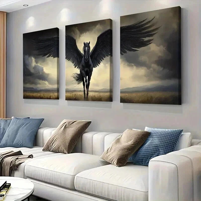 3pcs Fantasy Mythical Winged Horse Soaring Wall Art Set Canvas Framed 40x60cm - High Quality Print 100% Australian Made Wall Canvas Ready to Hang