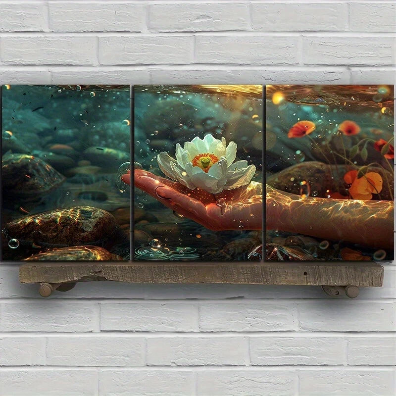 3pcs Flower on Palm Nature Contemporary Metal Print Ready to Hang Art