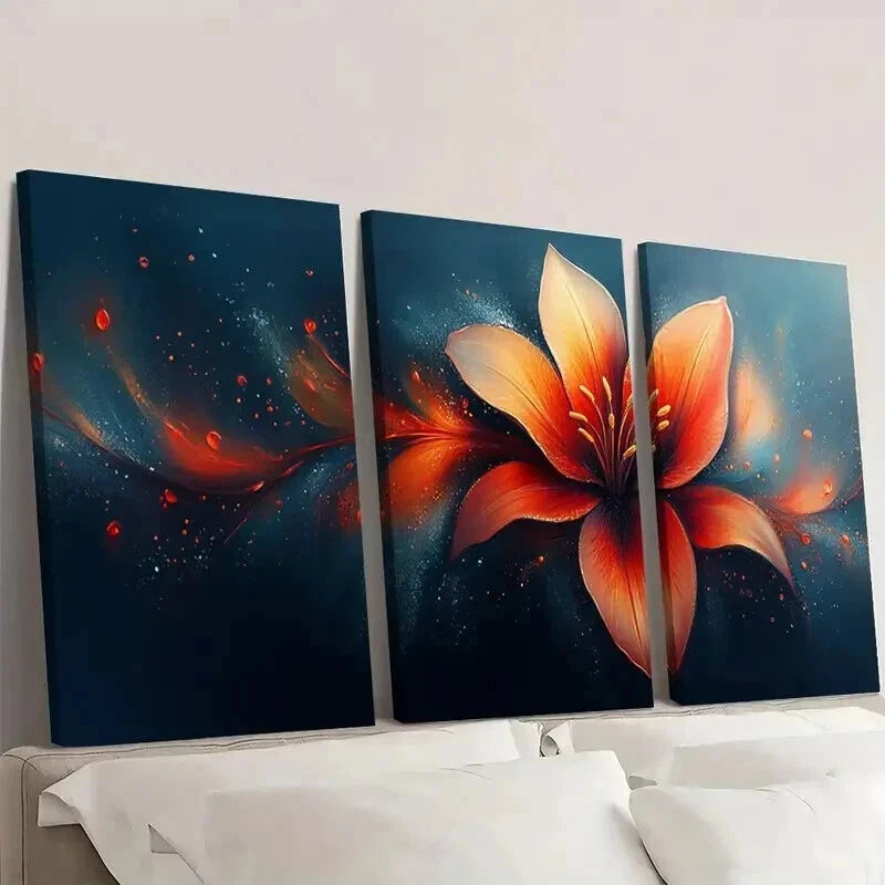 3pcs Flowy Lily Petals in Orange Red & Blue Wall Art Set Canvas Framed 40x60cm - High Quality Print 100% Australian Made Wall Canvas Ready to Hang