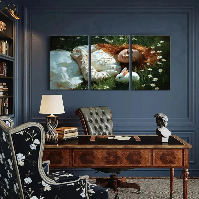 3pcs Garden Scene with Woman in Lace Dress Metal Print Ready to Hang Art