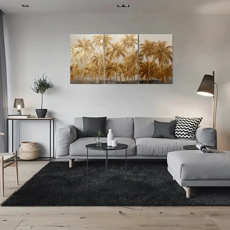 3pcs Golden Palm Tree Tropical Metal Print Ready to Hang Art