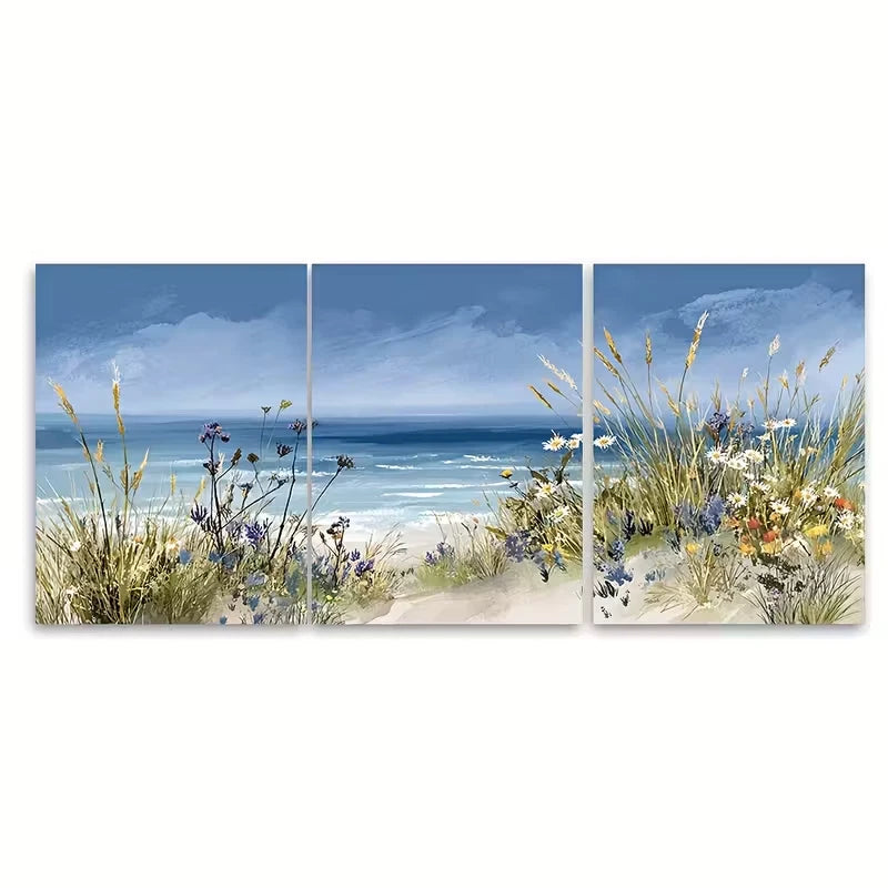 3pcs Grass Landscape Seashore Wildflowers Metal Print Ready to Hang Art