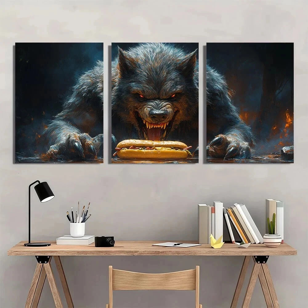 3pcs Halloween Werewolf & Hotdog Metal Print Ready to Hang Art