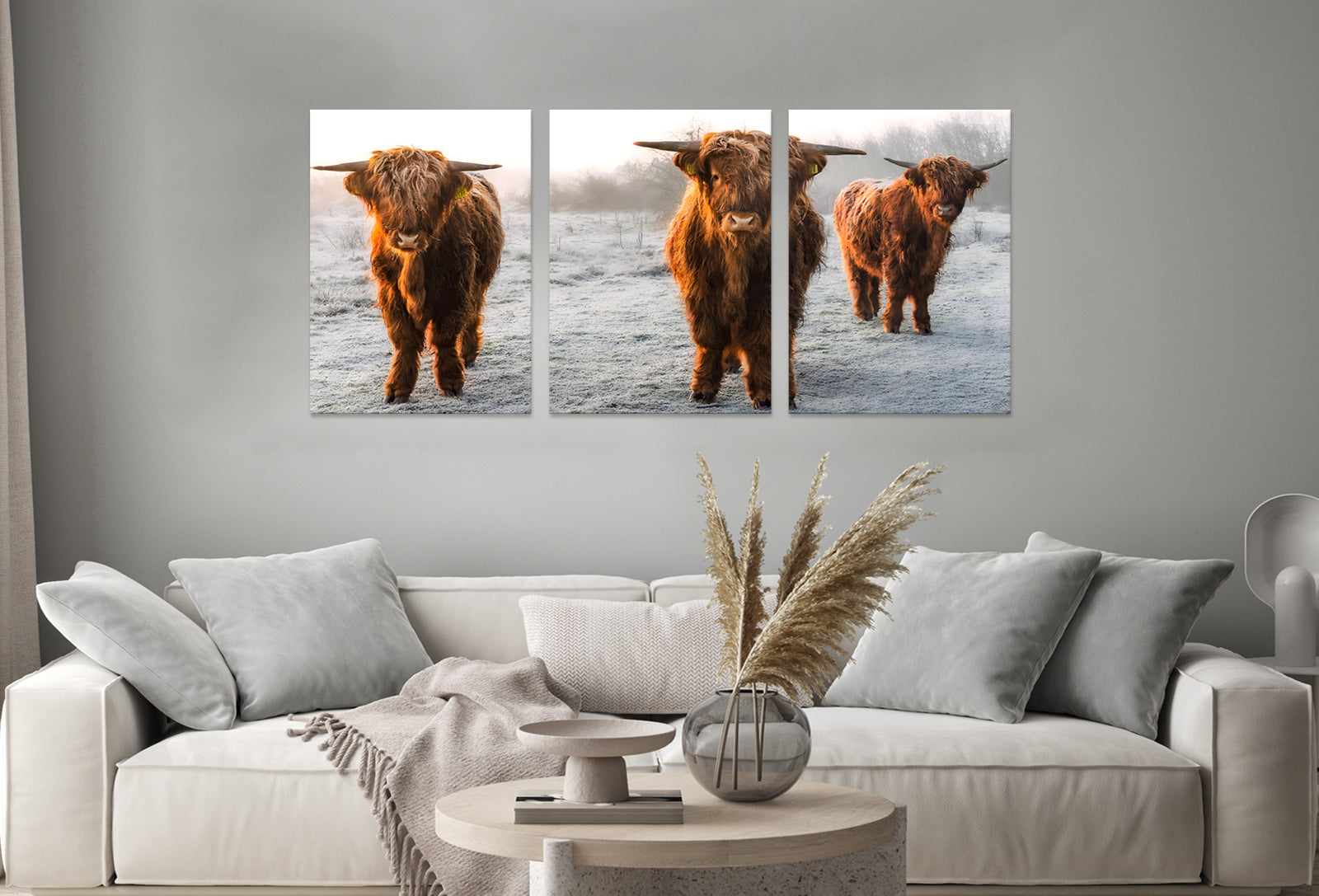 3pcs Highland Cow Photograph Vintage Design Wall Art Set Canvas Framed 40x60cm - High Quality Print 100% Australian Made Wall Canvas Ready to Hang