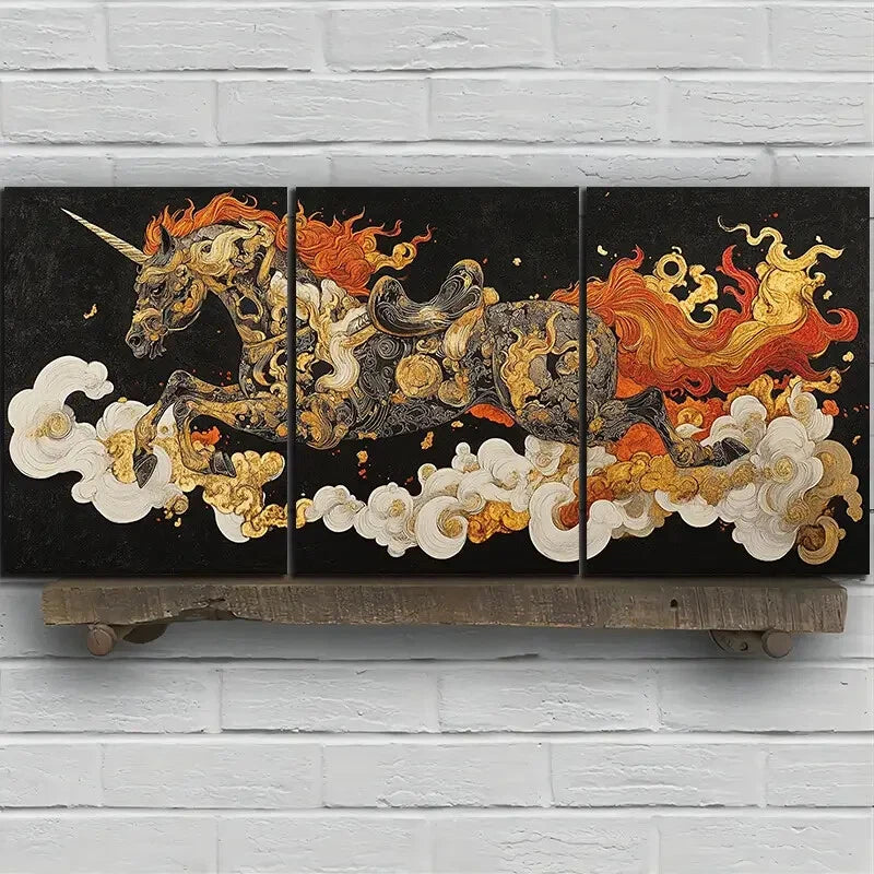 3pcs Horses Painting Colourful Abstract Metal Print Ready to Hang Art