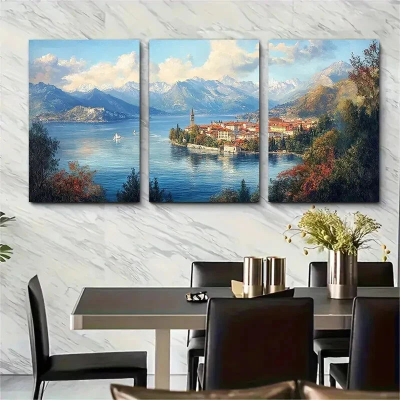 3pcs Italy & Switzerland Landscape Lake Maggiore Metal Print Ready to Hang Art