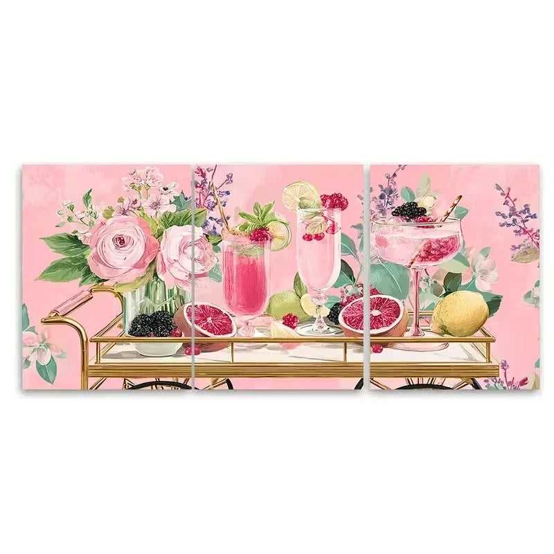 3pcs Keep Em Coming Cocktail Print Wall Art Set Canvas Framed 60x90cm - High Quality Print 100% Australian Made Wall Canvas Ready to Hang