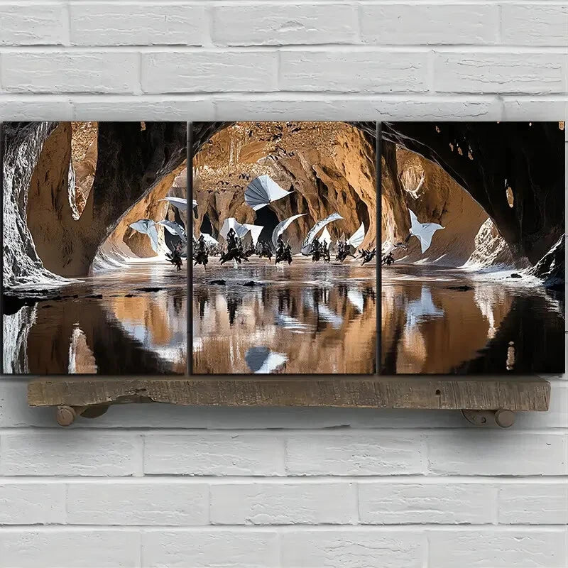 3pcs Kite on The Desert Canyon Brown Themed Metal Print Ready to Hang Art