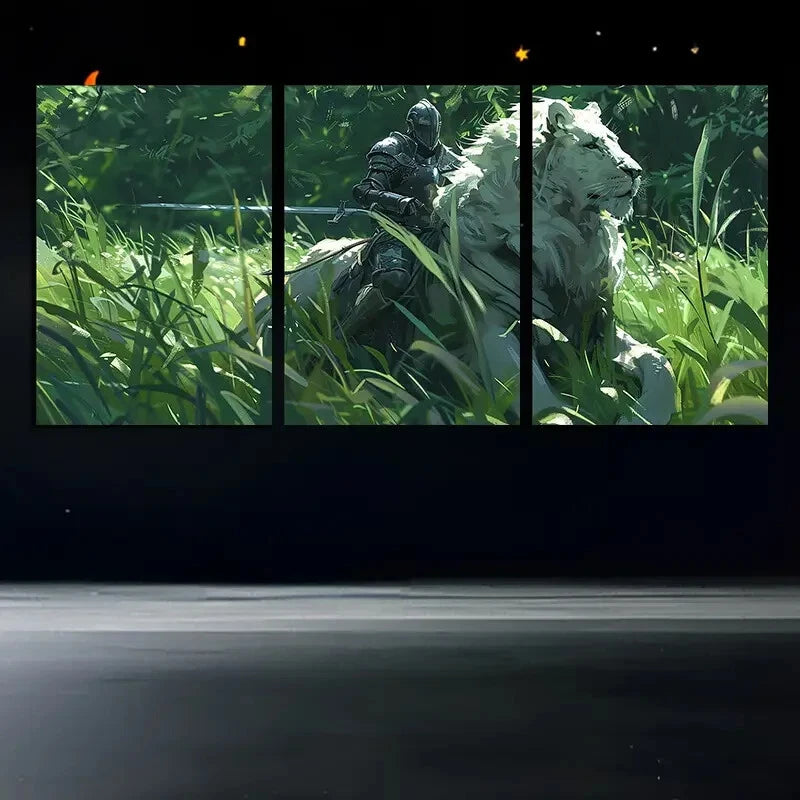 3pcs Lion Knight Fantasy Warrior and White Lion Metal Print Ready to Hang Art