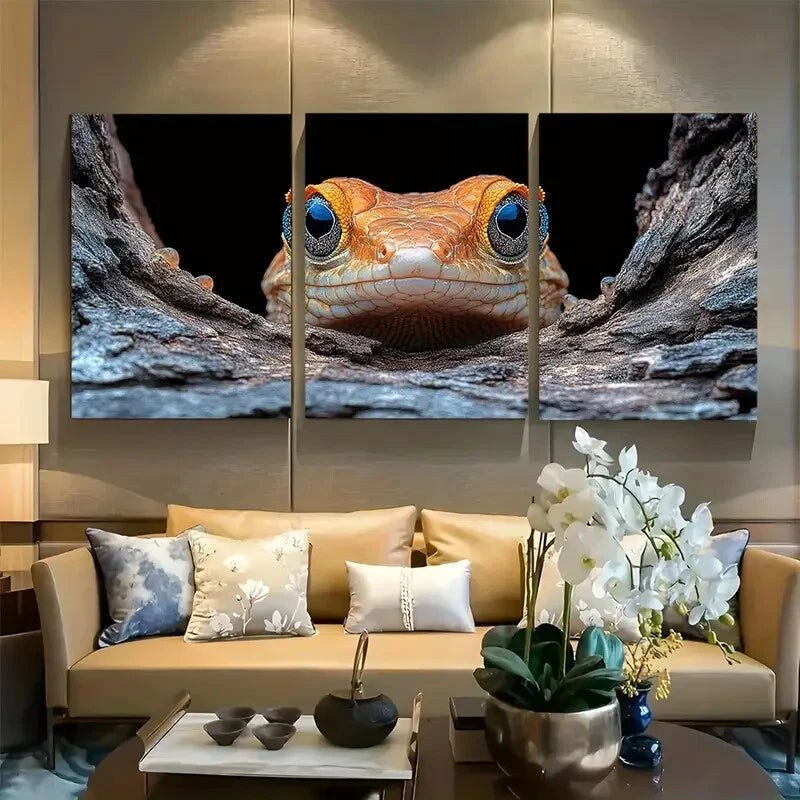 3pcs Lizard Poking His Head Out Of A Tree Metal Print Ready to Hang Art
