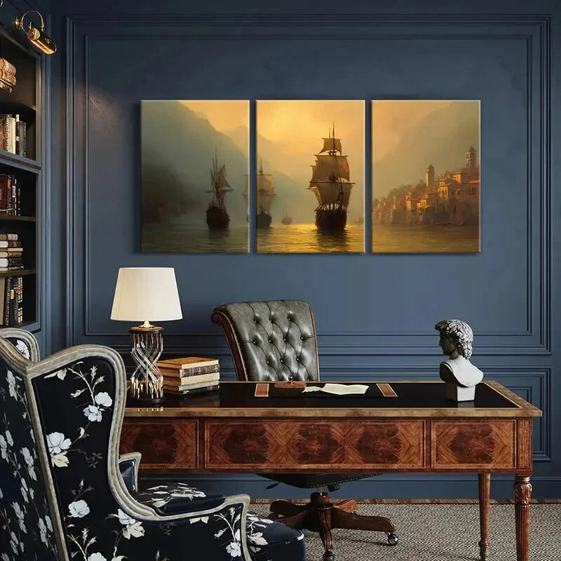 3pcs Maritime Adventure Vintage Sailing Ships Metal Print Ready to Hang Art