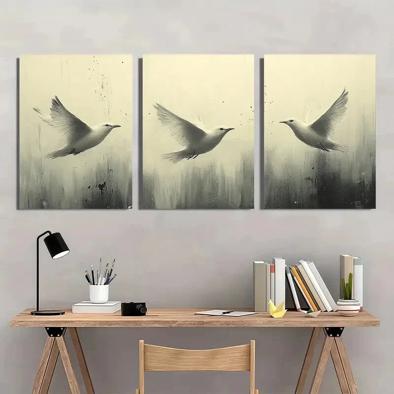 3pcs Minimalist Birds in Flight Neutral Nature Metal Print Ready to Hang Art