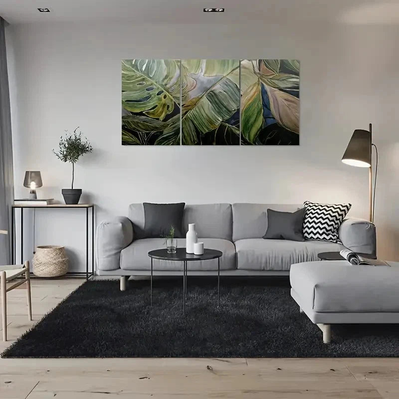 3pcs Modern Abstract Leaf Nature Inspired Metal Print Ready to Hang Art
