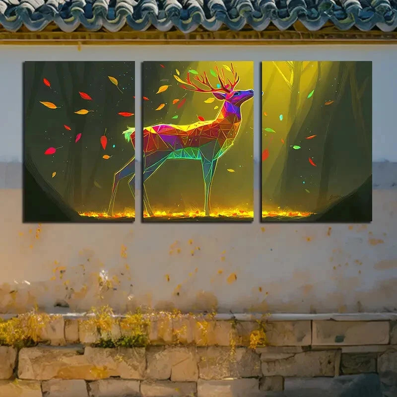 3pcs Modern Geometric Deer Vibrant Colors Design Metal Print Ready to Hang Art