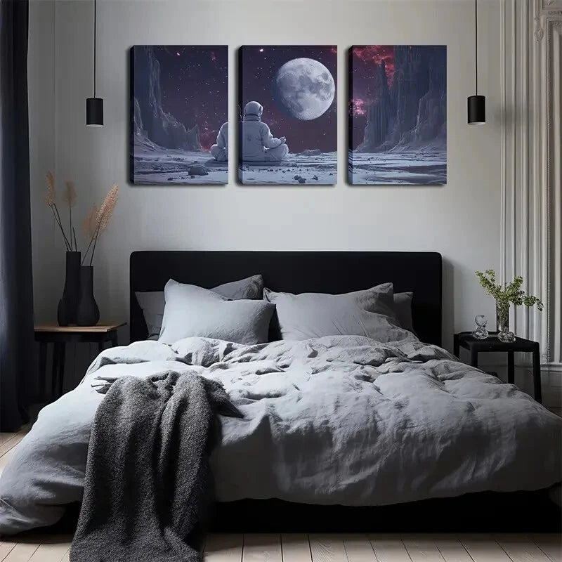 3pcs Moon And Planets Meditating Décor Perfect Wall Art Set Canvas Framed 40x60cm - High Quality Print 100% Australian Made Wall Canvas Ready to Hang