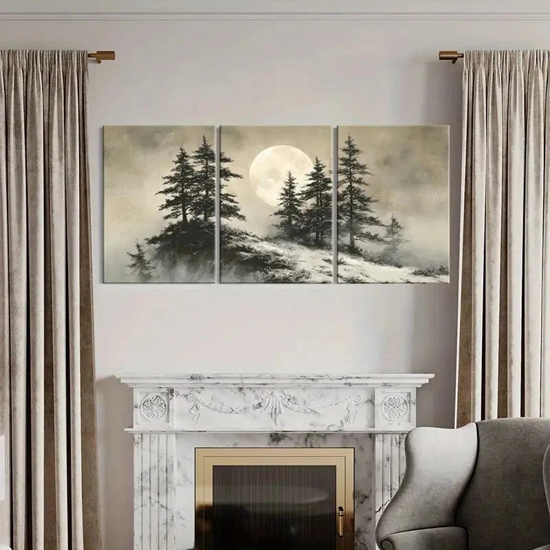 3pcs Moonlit Forest Silhouette Landscape Metal Print Ready to Hang Art