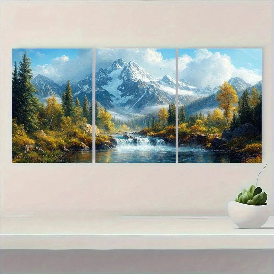 3pcs Mountain & Forest Scene Vibrant Nature Metal Print Ready to Hang Art