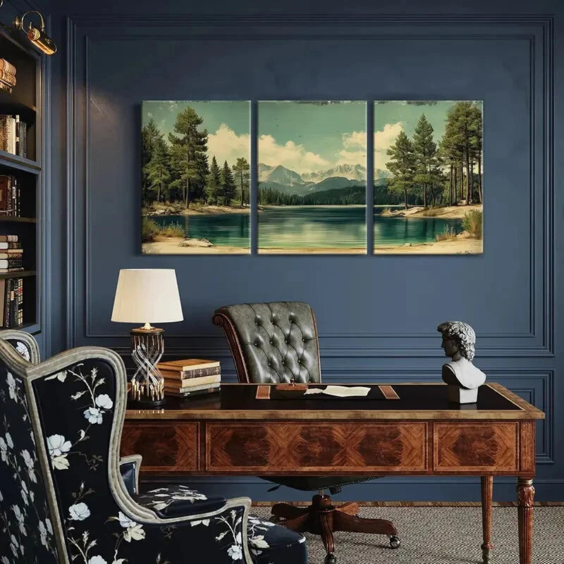 3pcs Mountain Lake Pine Trees Snowy Peak Metal Print Ready to Hang Art