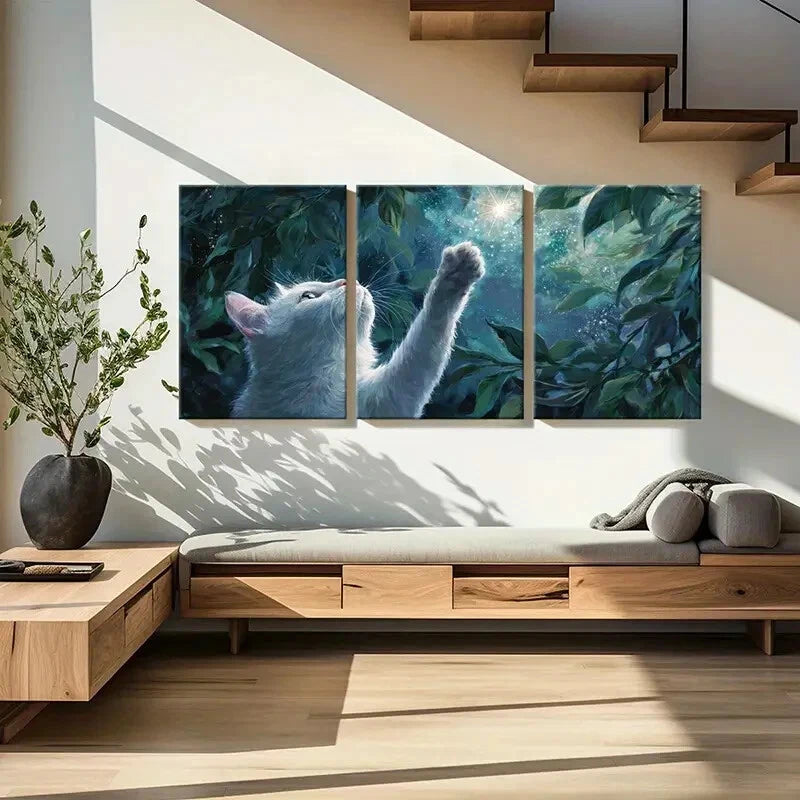 3pcs Mystical Fantasy Night Sky & Green Leaves Metal Print Ready to Hang Art