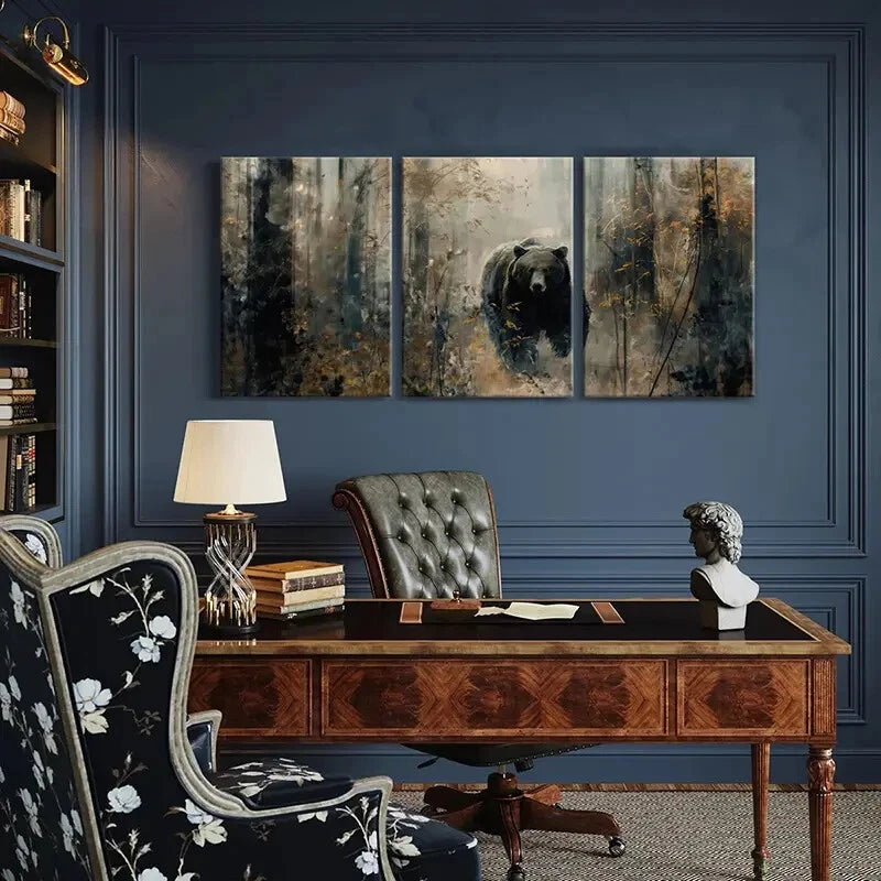 3pcs Mystical Forest Bear Art Wildlife Nature Metal Print Ready to Hang Art