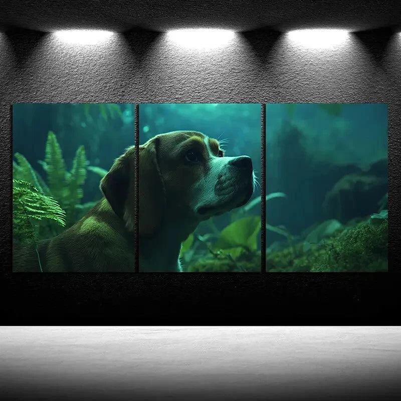 3pcs Nature Forest Botanical Leaves Animal Dog Metal Print Ready to Hang Art