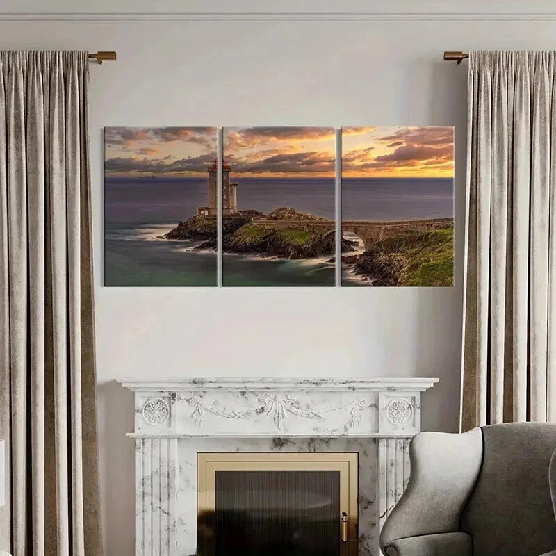 3pcs Ocean Coastline Lighthouse Nature Landscape Wall Art Set Canvas Framed 40x60cm - High Quality Print 100% Australian Made Wall Canvas Ready to Hang