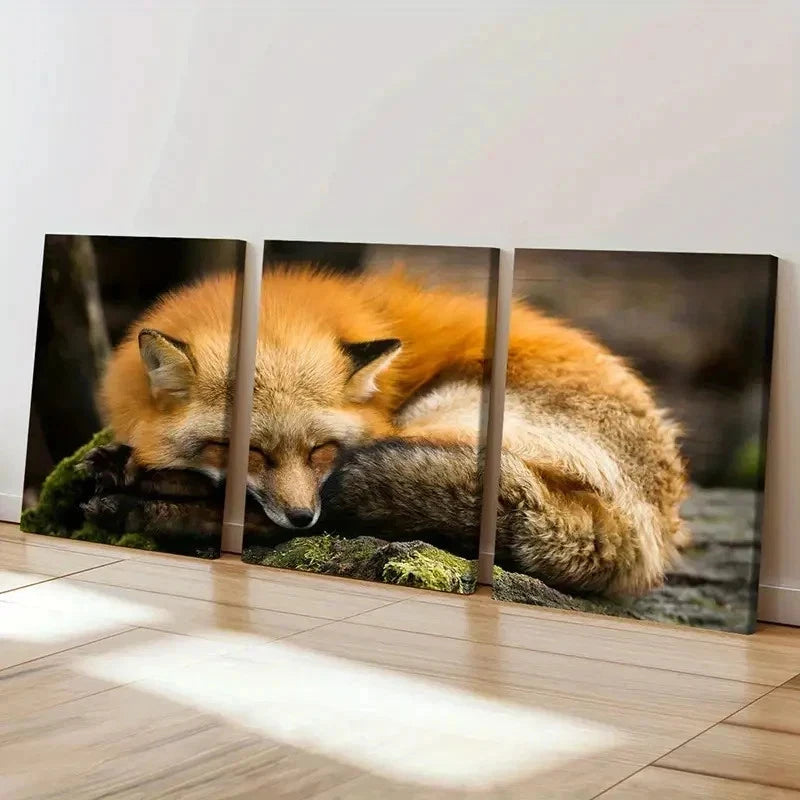 3pcs Orange Fox Sleeping on the Ground Wall Art Set Canvas Framed 40x60cm - High Quality Print 100% Australian Made Wall Canvas Ready to Hang