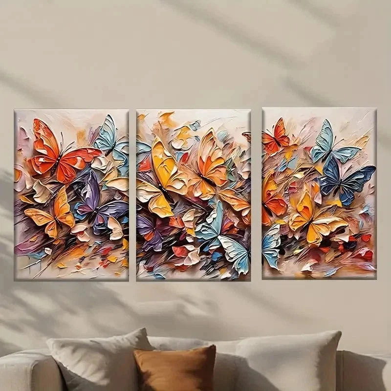 3pcs Painting of Colorful Butterflies Wall Art Set Canvas Framed 40x60cm - High Quality Print 100% Australian Made Wall Canvas Ready to Hang