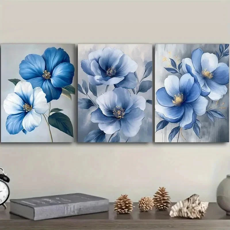 3pcs Paintings Featuring Blue Flowers Metal Print Ready to Hang Art