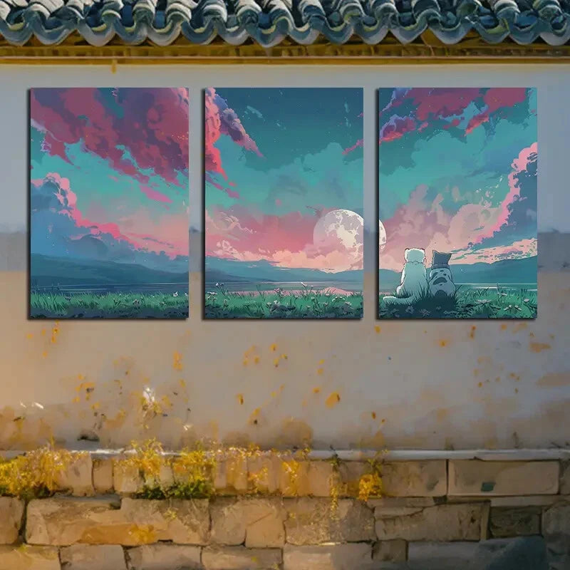 3pcs Peaceful Cats and Dogs Nature theme Design Metal Print Ready to Hang Art