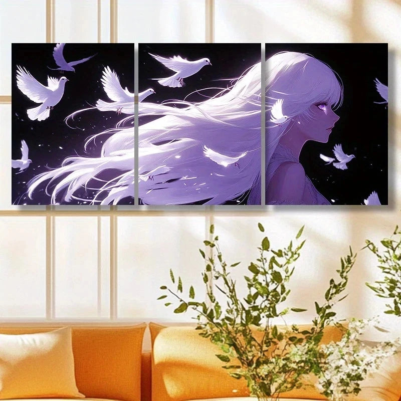 3pcs Purple Figure Flying Birds Metal Print Ready to Hang Art