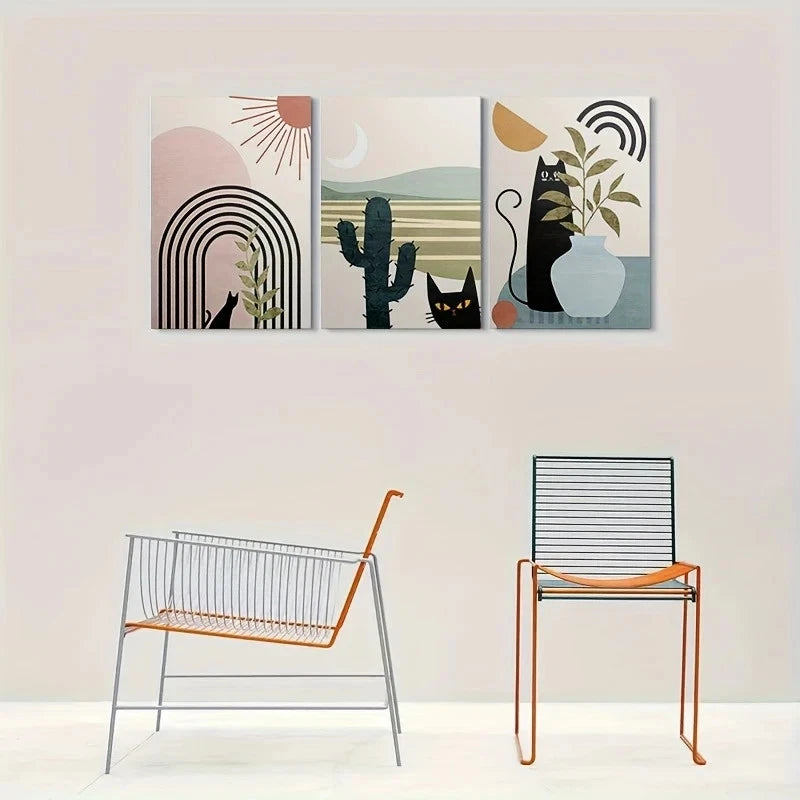 3pcs Rainbow Cactus & Plant Motifs Metal Print Ready to Hang Art