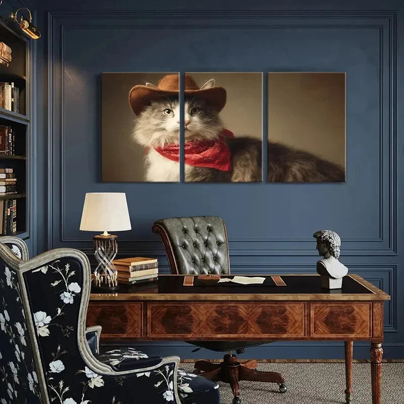 3pcs Red Bandana & Brown Hat Whiskers & Fluffy Fur Metal Print Ready to Hang Art