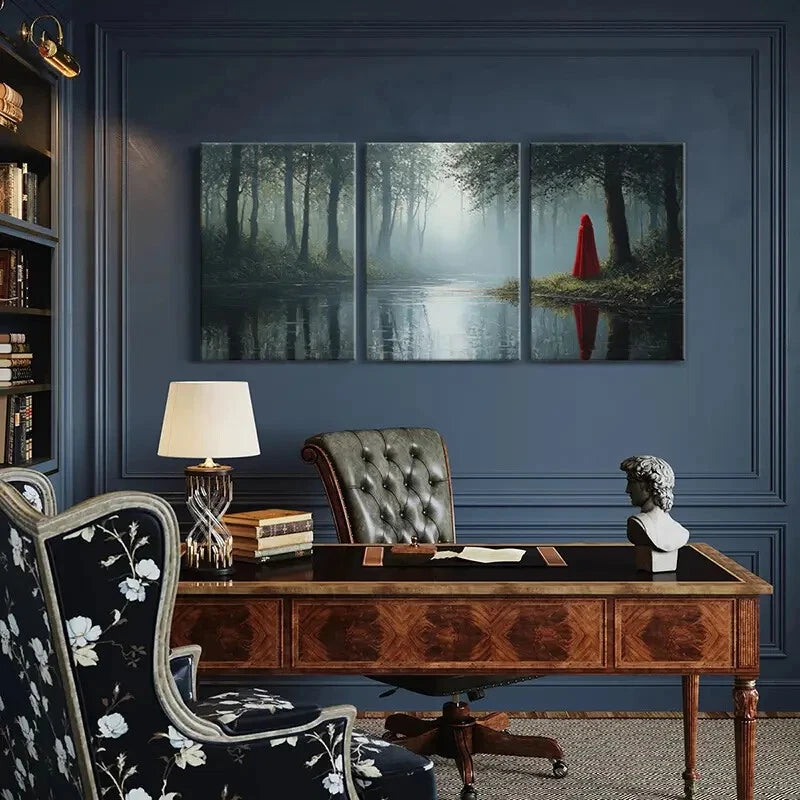 3pcs Red Cloak Figure Mysterious Atmosphere Metal Print Ready to Hang Art