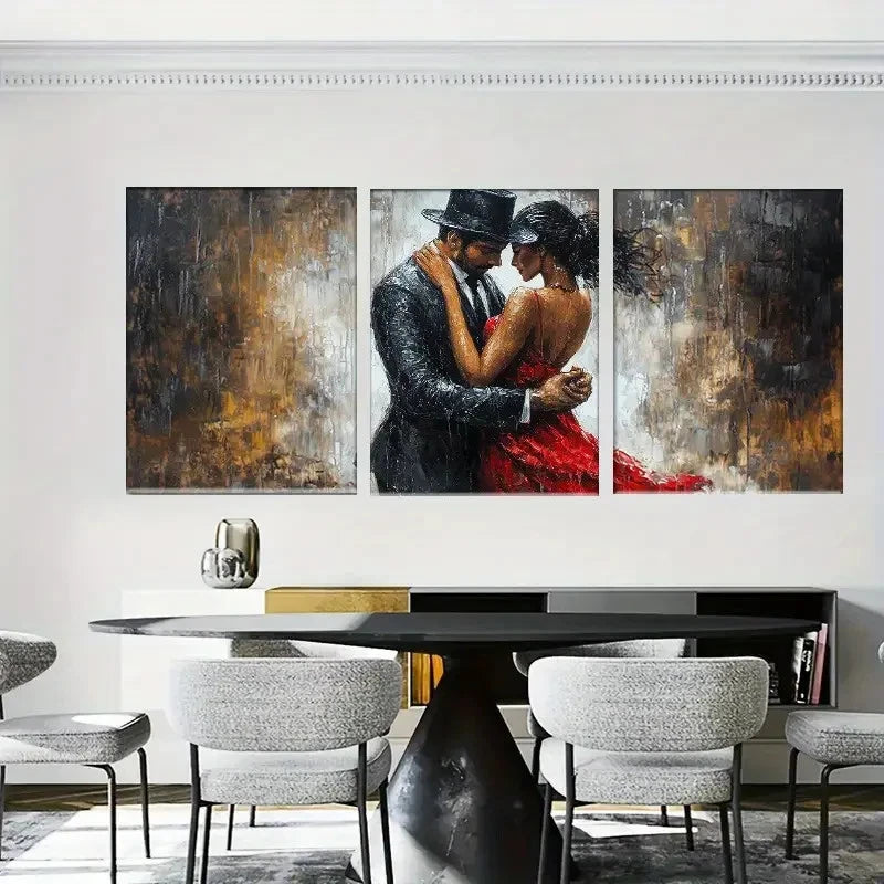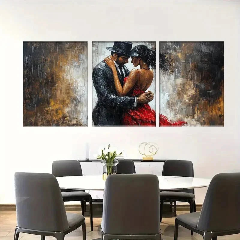 3pcs Romantic Dancing Lovers in Artistic Hug Metal Print Ready to Hang Art