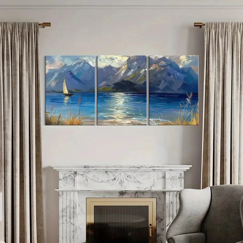 3pcs Sailboat Mountain Range Blue Waters Metal Print Ready to Hang Art