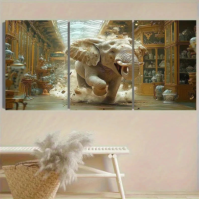 3pcs Majestic Elephant Wall Art Set Canvas Framed 60x90cm - High Quality Print 100% Australian Made Wall Canvas Ready to Hang