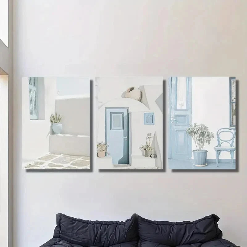 3pcs Santorini Island Blue Doors & Porches Metal Print Ready to Hang Art