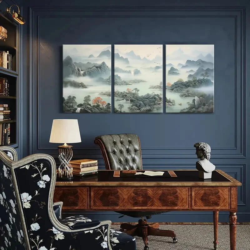 3pcs Serene Chinese Traditional Landscape Metal Print Ready to Hang Art