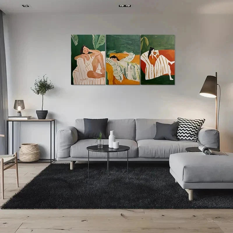 3pcs Serene Figures & Tropical Leaf Metal Print Ready to Hang Art