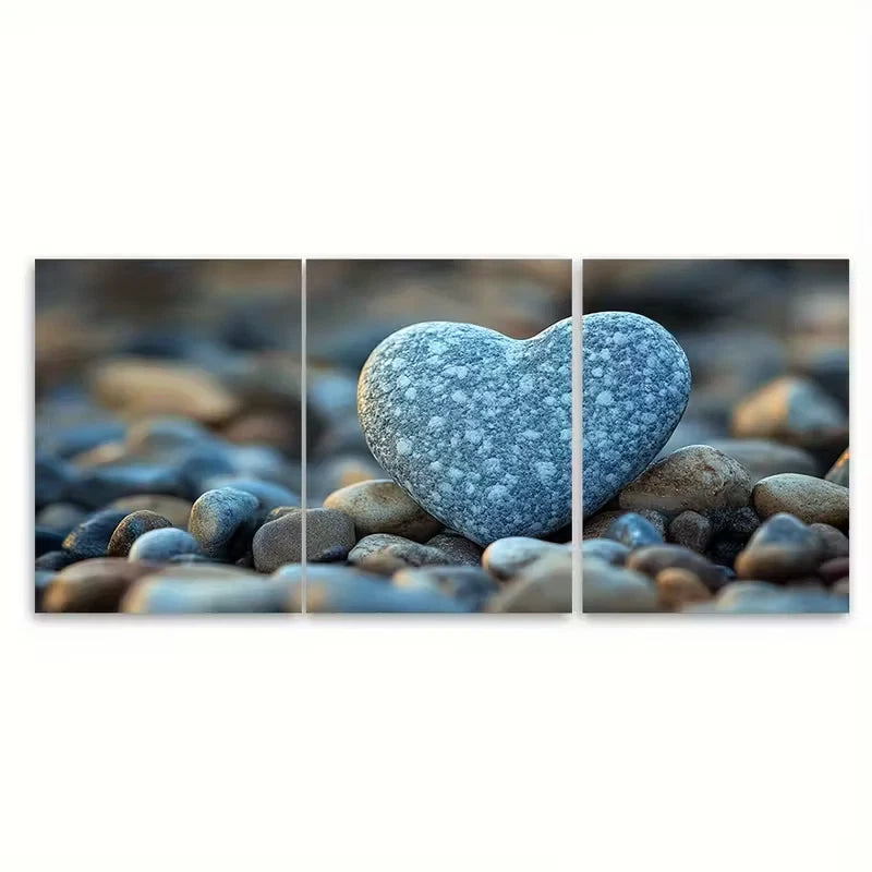 3pcs , Serene Heart Shaped Stone Metal Print Ready to Hang Art