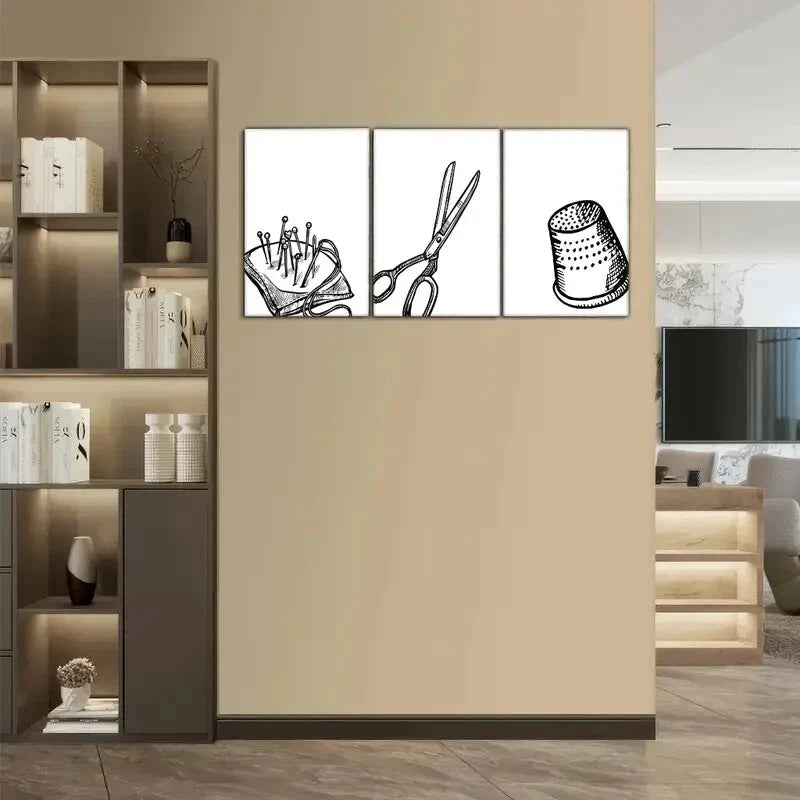 3pcs Sewing Needles Scissors Bucket Sewing Art Metal Print Ready to Hang Art