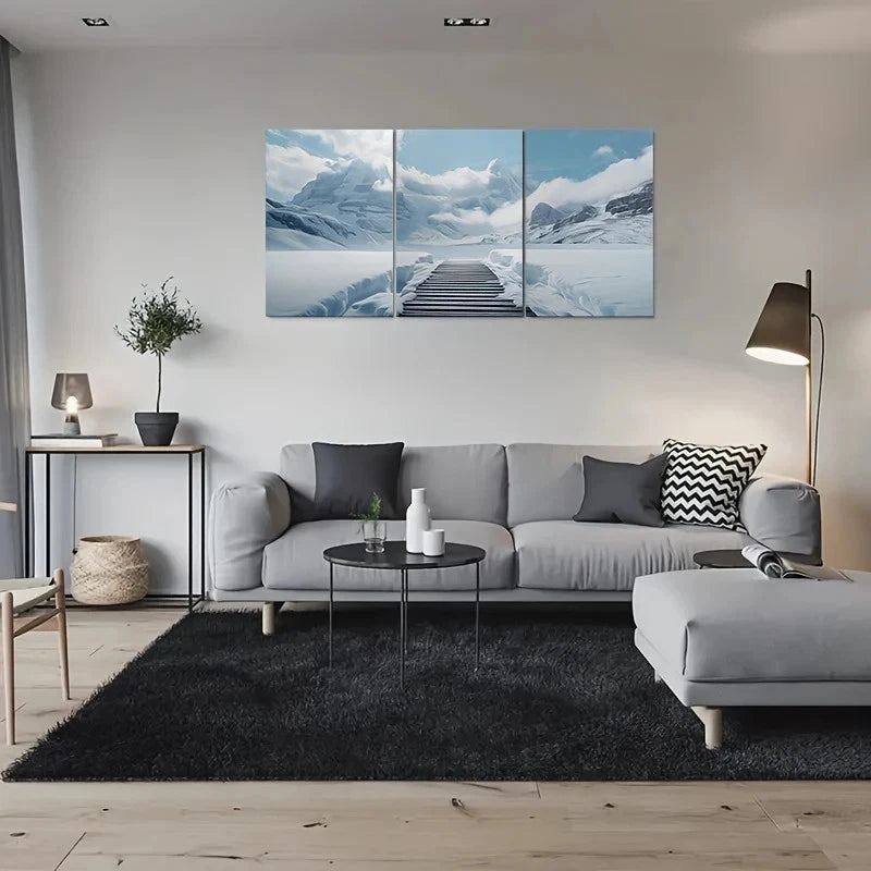 3pcs Snowy Mountain Path Winter Nature Metal Print Ready to Hang Art