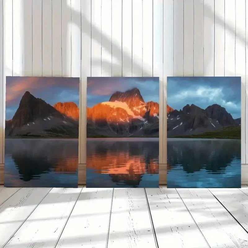 3pcs Snowy Mountains Golden Reflection Painting Metal Print Ready to Hang Art