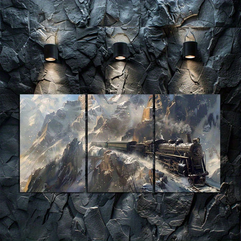 3pcs Steam Train with Black and Green Colors Wall Art Set Canvas Framed 60x90cm - High Quality Print 100% Australian Made Wall Canvas Ready to Hang