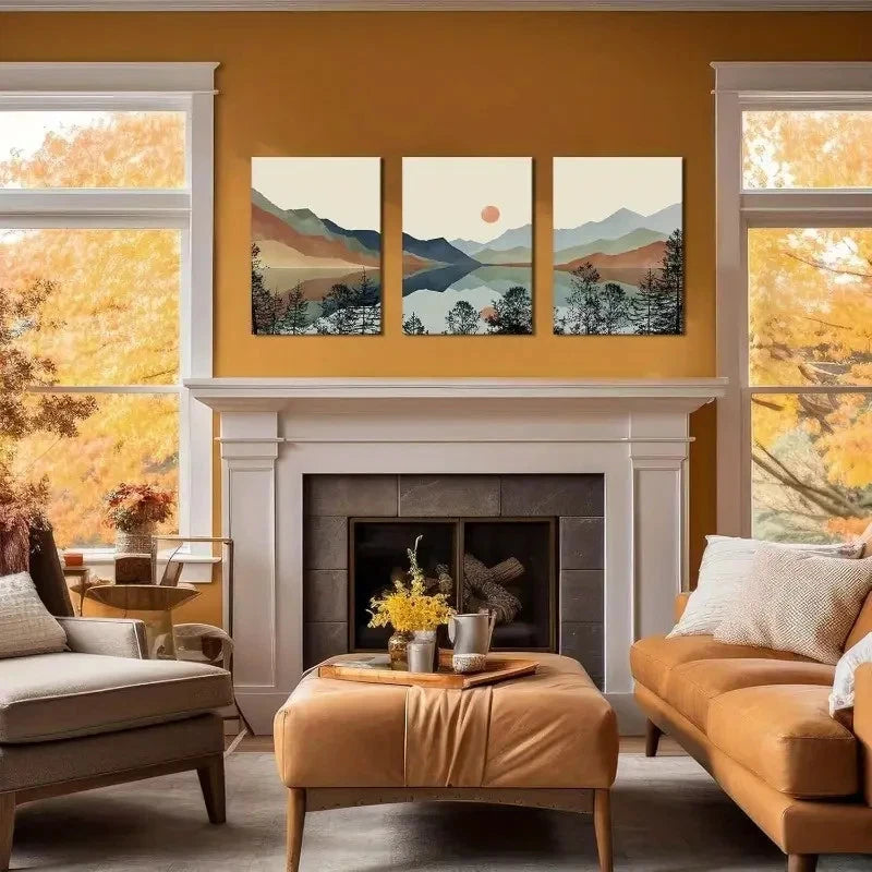 3pcs Sun Forest Abstract Nature Landscape Metal Print Ready to Hang Art