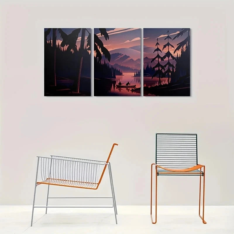 3pcs Sunset Serene Canoe and Trees Metal Print Ready to Hang Art